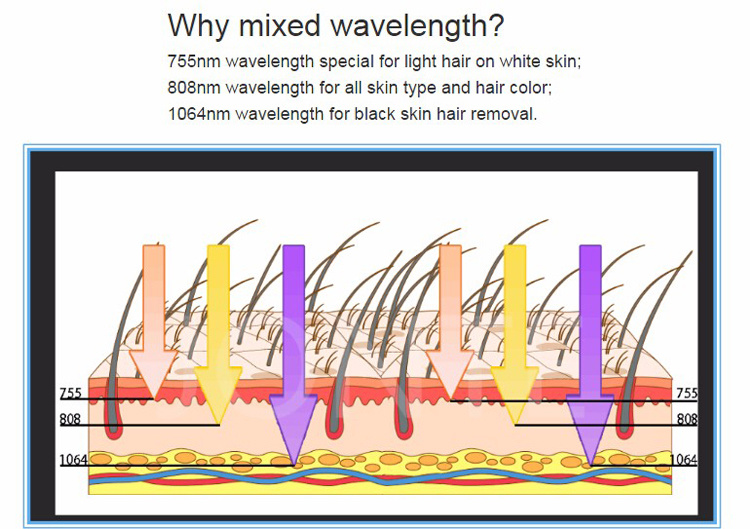2.755nm, 808nm, 1064nm, 3 lunghezze d'onda ha integrato. Tre più Sicuri provati lunghezze d'onda facoltative per tutta la pelle digitano, persino pelle abbronzata